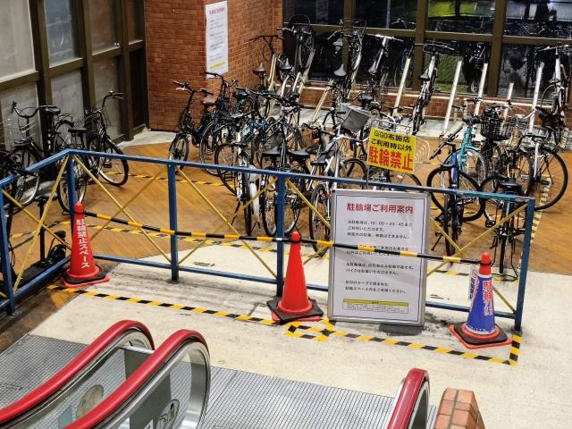 店舗西側の出入口前に自転車用ラック(駐輪代無料)を設置。