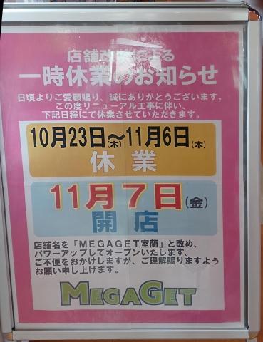2025/10/23~11/6 リニューアルの為臨時休業。また、店舗名も「MEGAGET室蘭」に変更予定。