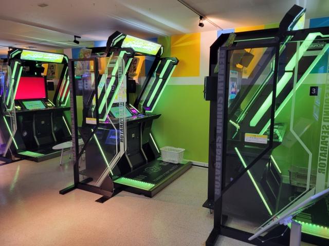 SDVX(VM3台)、DDR(金筐体)、pop'n(液晶筐体)、ギタドラ AM筐体、maimai、チュウニ、オンゲキ、太鼓×3