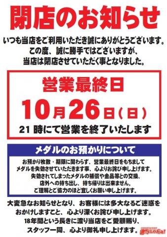基板未交換のため、10月末で撤去の告知が掲示されていました。